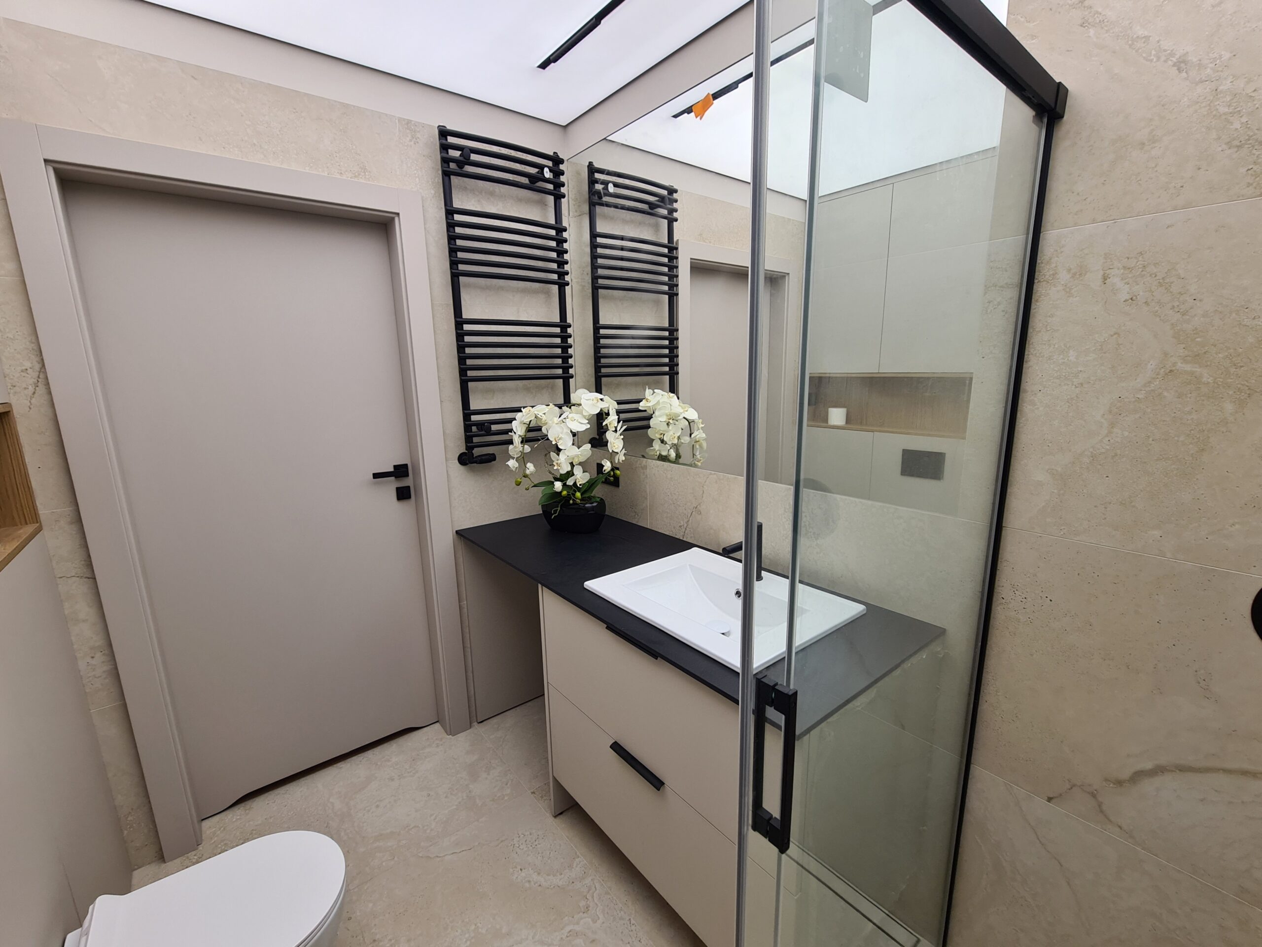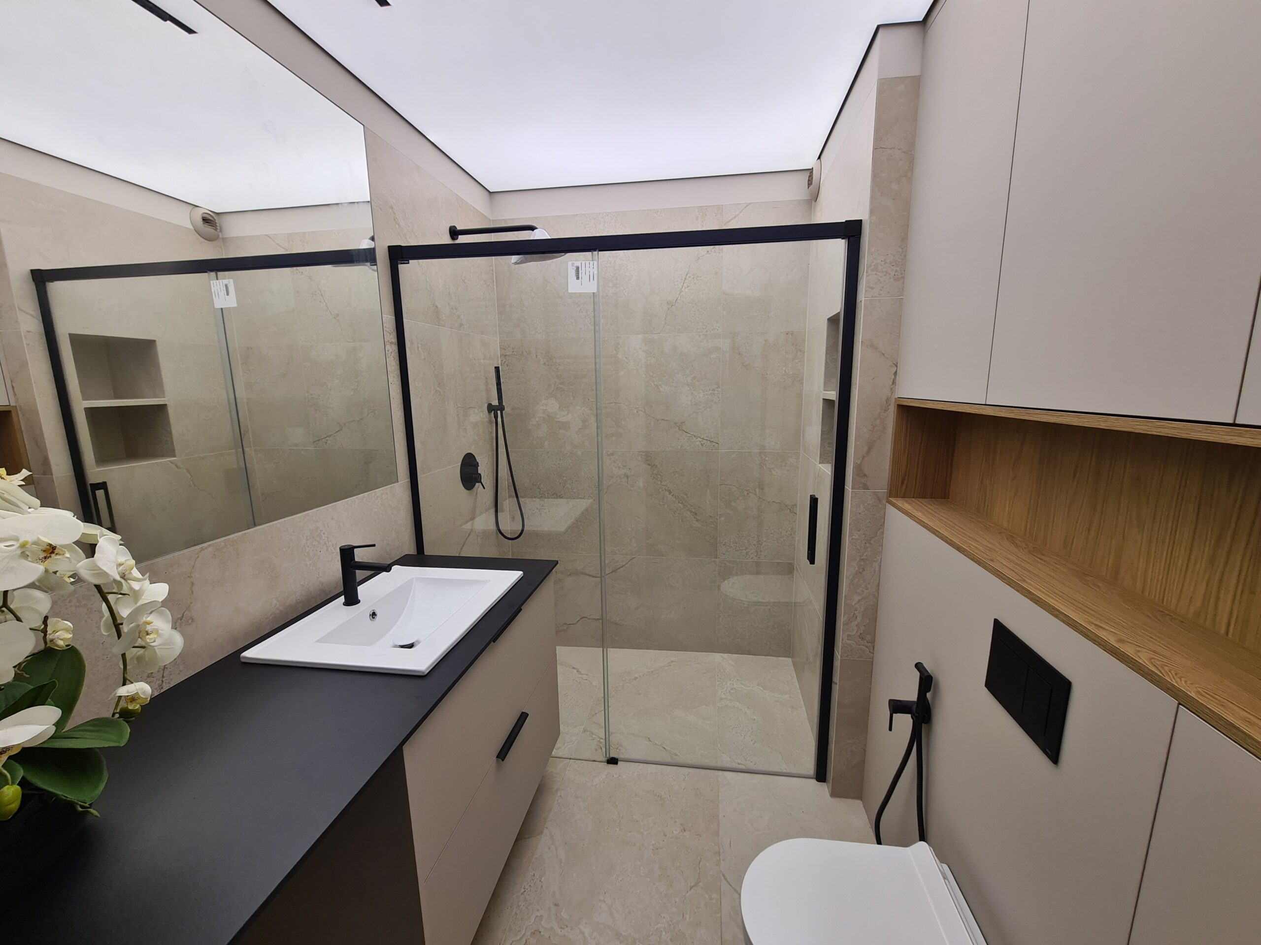– łazienka z sufitem napinanym, kabina (4,98 m2),
